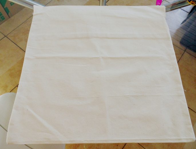 Para trabalhar com stencil, eu optei por um tecido de algodão cru, mas pode ser tecido de linho, panamá, brim, lonita, desde que a superfície seja porosa pois a tinta vai aderir melhor.