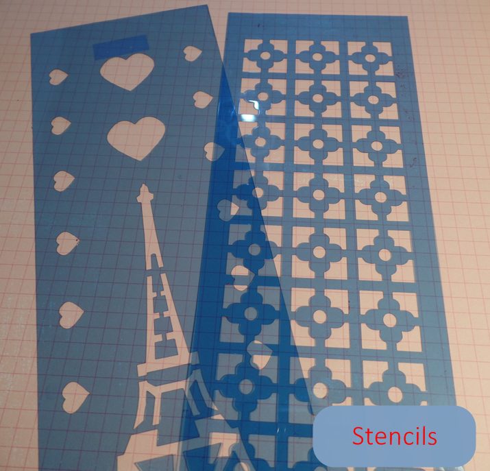 E claro, os Stencils, eu já tinha esses (abaixo) que comprei numa feira de artesanato, mas é bem fácil de achar em qualquer casa de artesanato, e o melhor, com uma variedade bem grande de motivos. À propósito a palavra Stencil escrita desta forma esta em inglês no nosso português é Estêncil, resolvi deixar desta forma para facilitar já que o blog tem leitores pelo mundo afora.