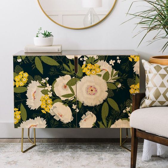 É uma dica bacana para quem ama flores, invista em móveis em estampas florais para algum móvel, além de trazer vida, você pode escolher uma peça de destaque como aparadores, buffet, o mix de cores traz uma luz para qualquer ambiente, ou se você tiver habilidades artísicas pode fazer o desenho você mesma.